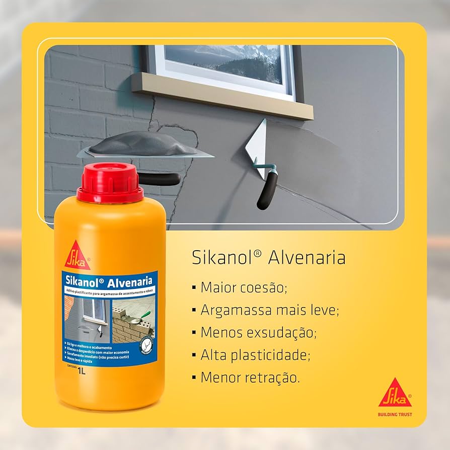 Sikanol® Alvenaria é um aditivo de base sintética concentrado que proporciona às argamassas frescas ótima liga e efeitos altamente plastificantes e estabilizadores, tornando-as com consistência mais plástica e com constante lubrificação.