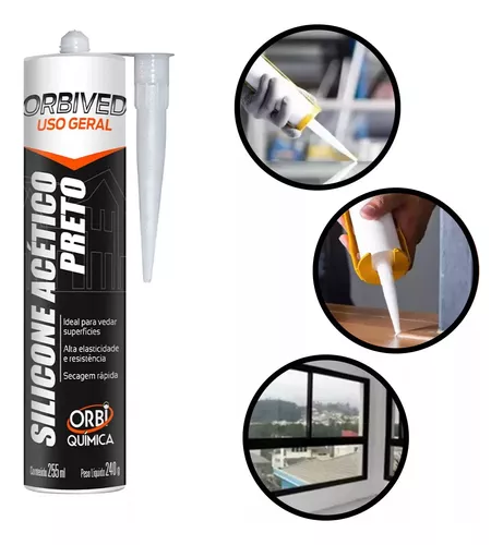 SILICONE ACÉTICO 240G PRETO – ORBIVED USO GERAL